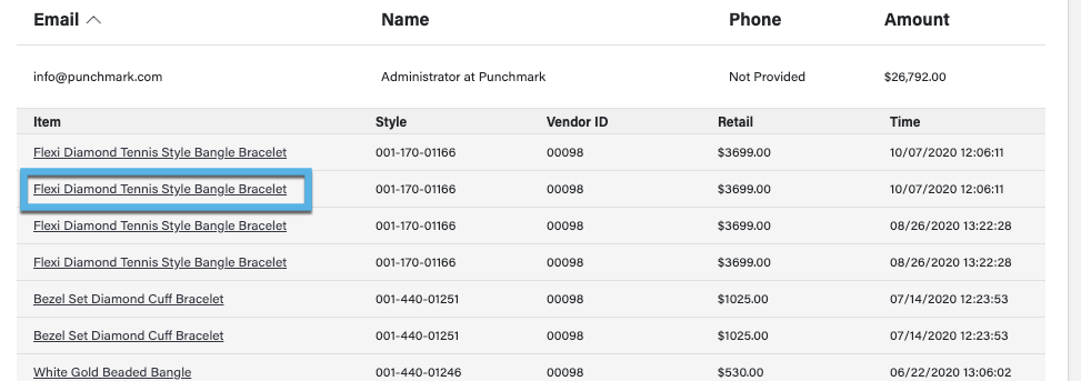 Select an item in the list to view the contents of the abandoned cart. You can also select any item to view the product page.