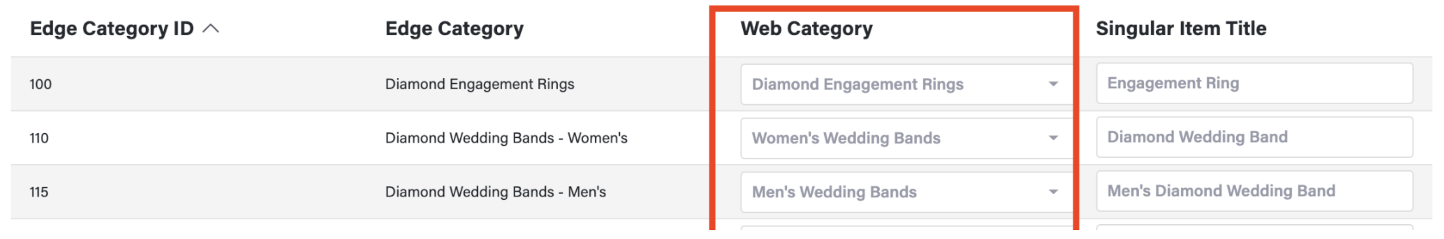 2. On that same Category Mapping page, in the column labeled “Web Category”, you’ll need to select the website category that you want associated with that Edge category.