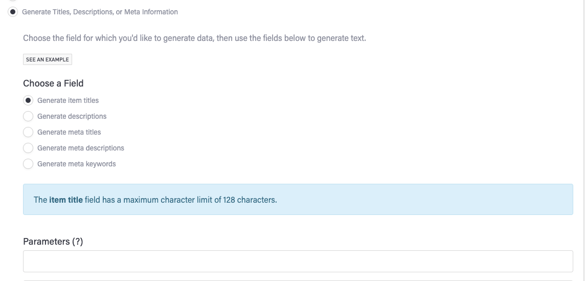 In the Choose a Field section, choose Generate Item Titles.