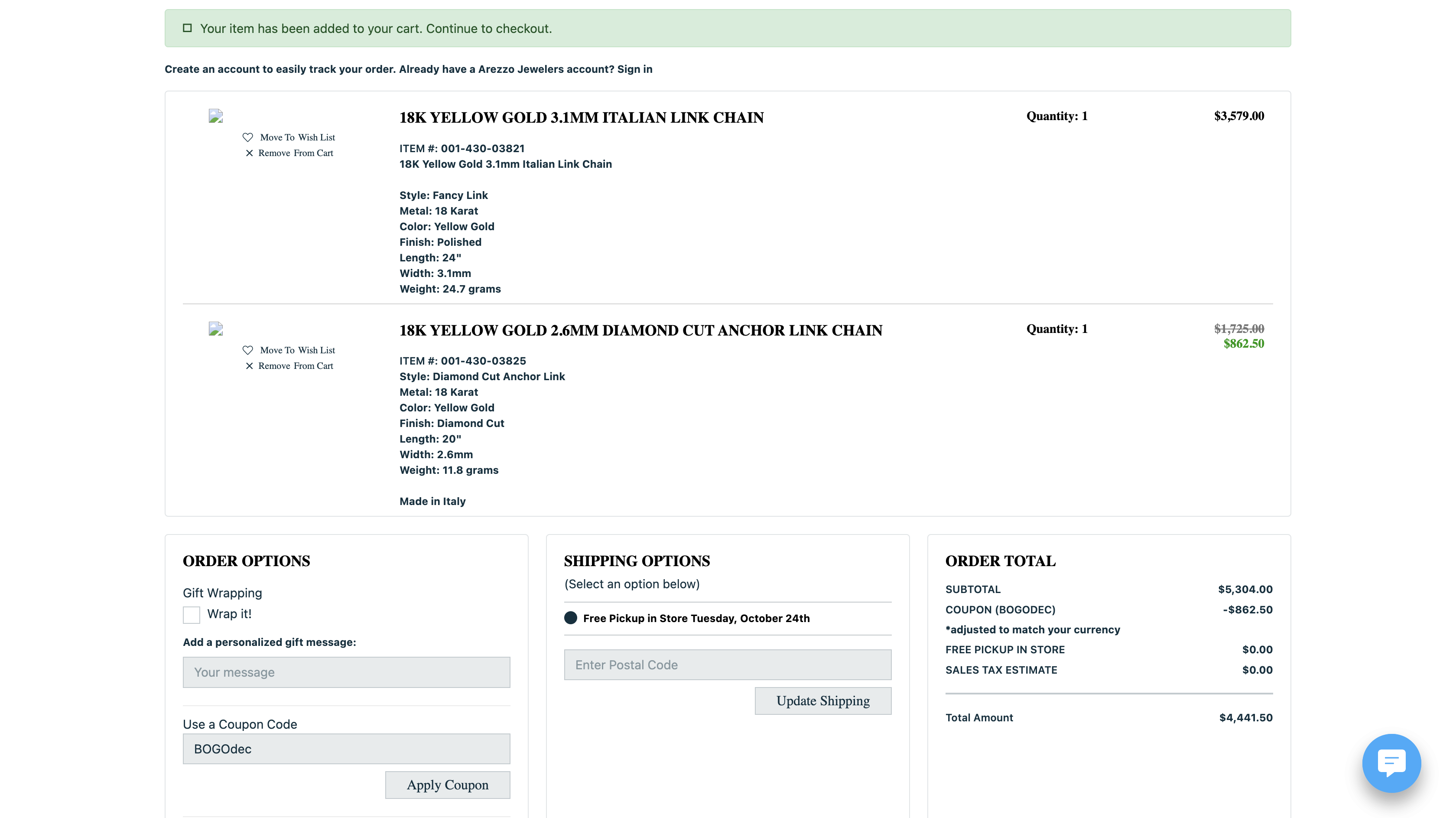 If a coupon is BOGO, the discount applies to the least expensive item in the shopping cart. If only one item exists in the cart, this coupon has no effect, and the user will receive a notice when adding the coupon code.