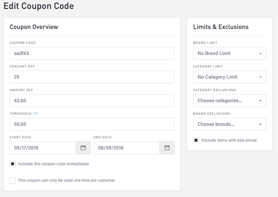 Edit a Coupon Code