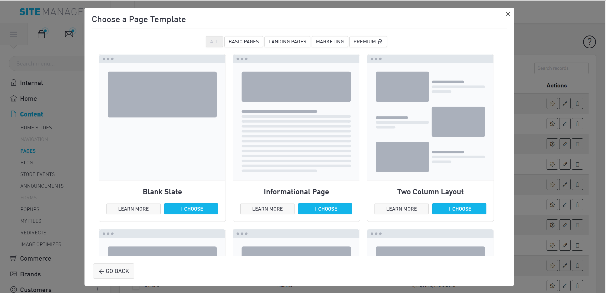Template Layouts: Template layouts are pages that are pre-filled with widgets and elements that you can add information to. You can also rearrange them on the page to create a semi-custom layout without starting from a blank page. We recommend starting with a template page.