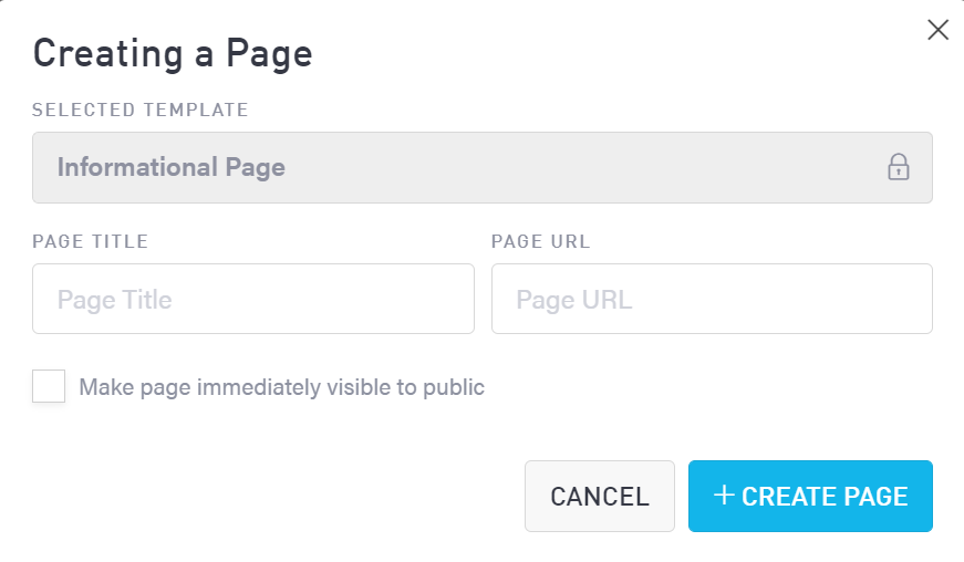 Page visibility determines whether customers can see this page on your site. When using a pre-filled page, you can set the page to be visible from the outset. For all other pages that you are building yourself, wait until the page is complete before making it visible.