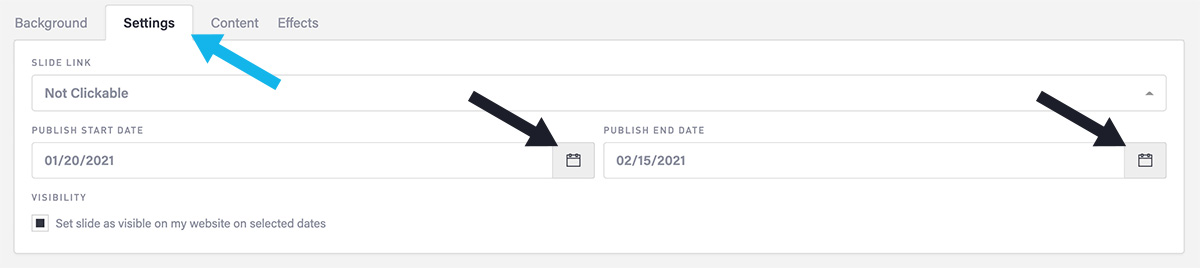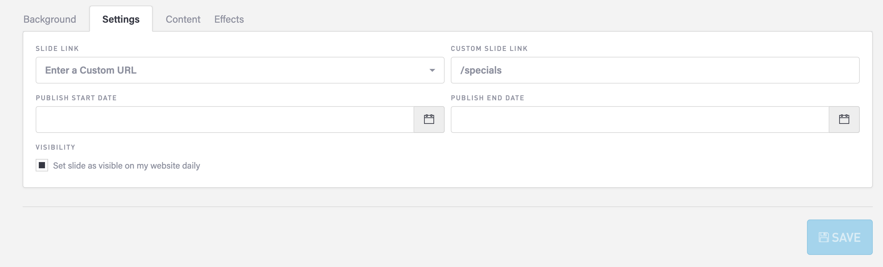 If your slide has to do with sales or holidays, it can be helpful to add a Start/End date to your slides. This way your slide will be set to invisible at the end of the last day.