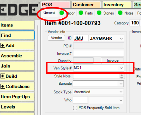 In the General Tab of the Edge, you will need to ensure that each variation of your products has a different entry for either the attributes that differ so the system knows it is different from another product with the same Vendor Style #