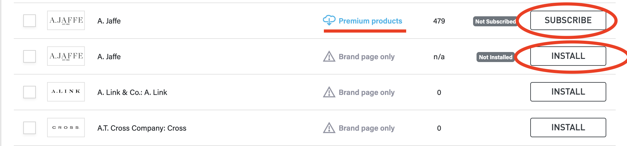 Please note that if a vendor does not have a “subscribe” button next to them, they are not a premium vendor with Punchmark and we only provide an informational brand page for you to install.