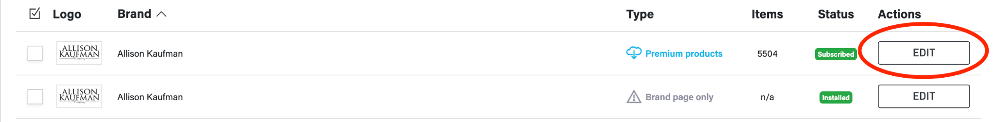 First, Log into SiteManager and navigate to Brands > Brand Subscriptions. On this page you will find all of our premium vendors, as well as brand pages you can install for other vendors that are not in our premium vendor program.