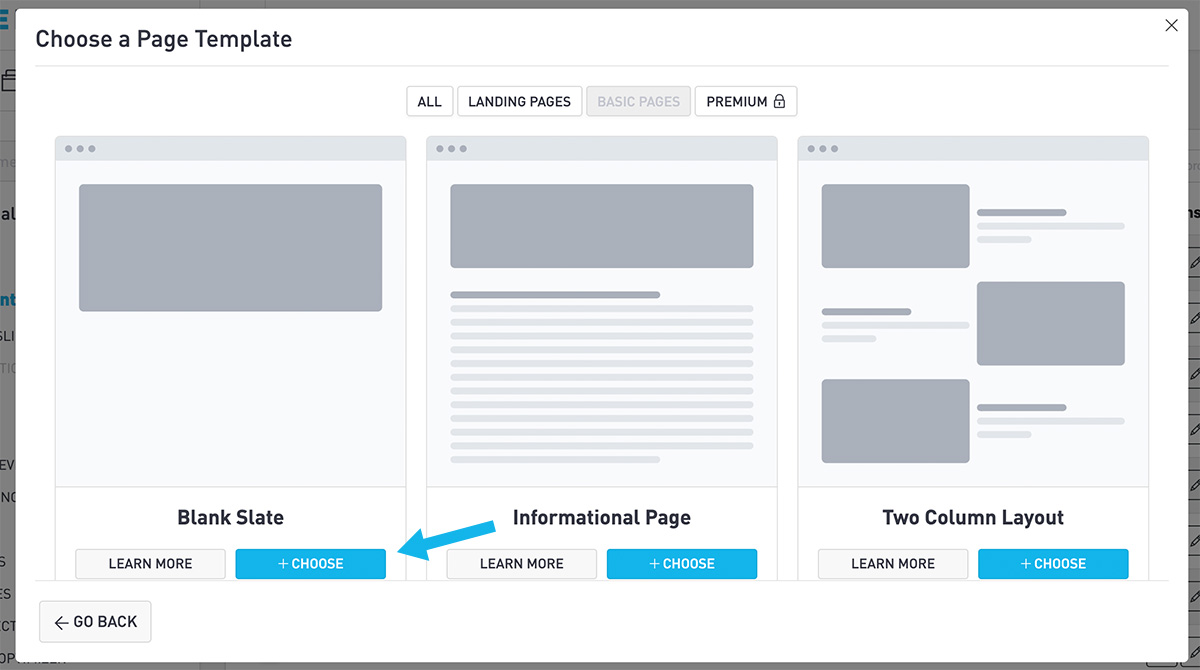 Start with the Blank Slate page template.