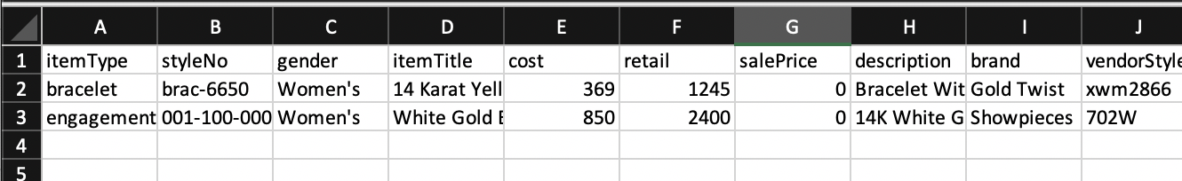 There are two approaches to importing product data, add records to a sample CSV file or export product data to a CSV and edit that file. After editing a CSV file and saving it, you can import your product data. Follow the instructions in the sections below.