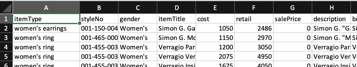 Open this file in a spreadsheet application to view all of your product records.