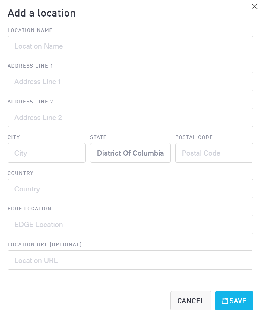 Enter in your store name, full street address, EDGE location, and optional location URL. Once you have entered in all the information, click “Save” at the bottom of the pop-up.