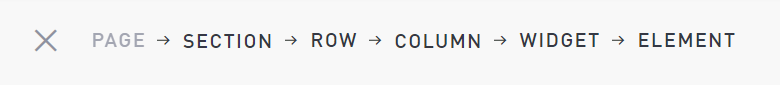 The Page icon (see image on left) shows you the PageBuilder menu. From here, use Breadcrumbs or the Stage to navigate to different levels of PageBuilder.