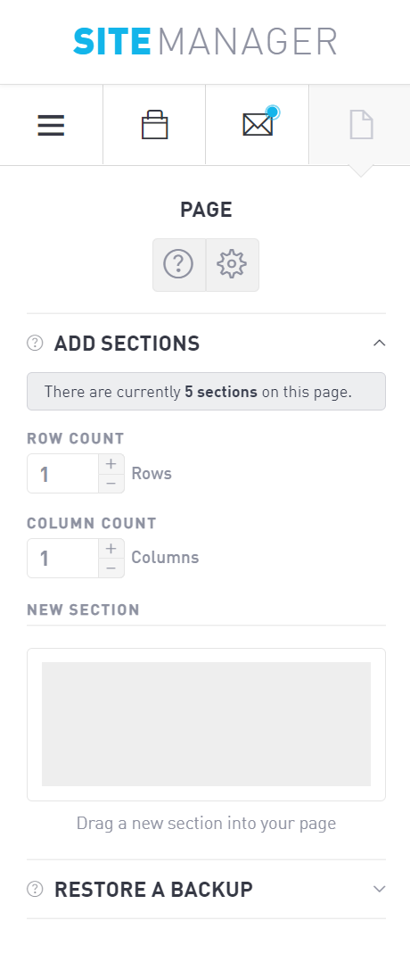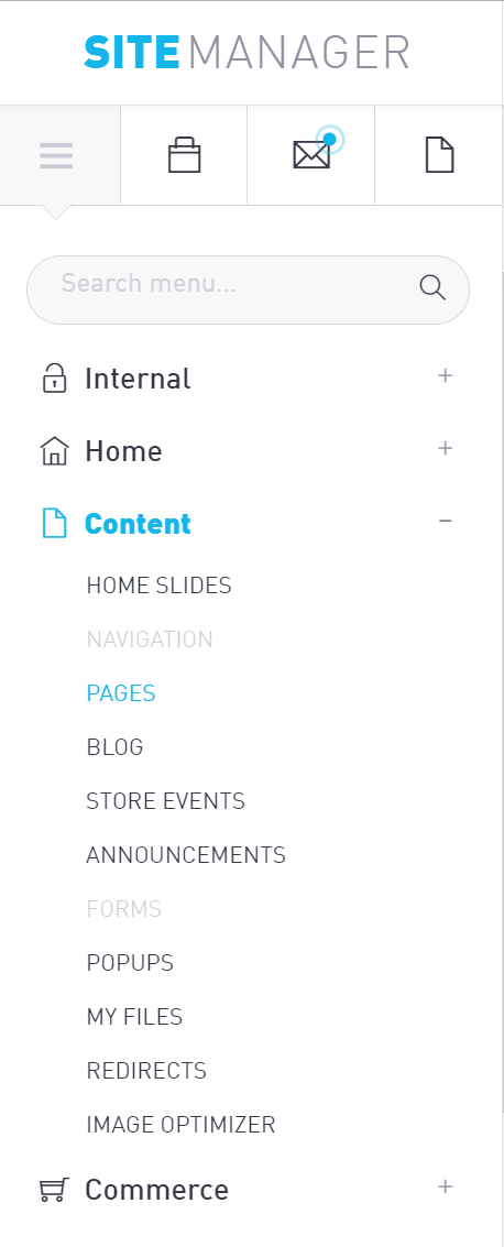 The hamburger menu (see image on right) gives you access to all of SiteManager. If you need to update your branding or store information, see a list of all your pages, or change your default colors, use this menu.