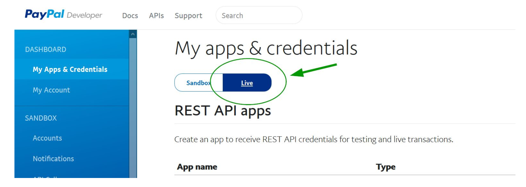 IMPORTANT!! Click the "Live" option, otherwise your transactions will go through, but you won't receive any money! See below.