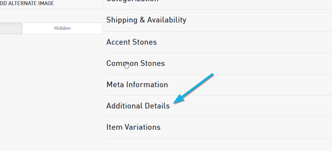 Scroll down inside the product editor to the expandable section called "Additional Details"