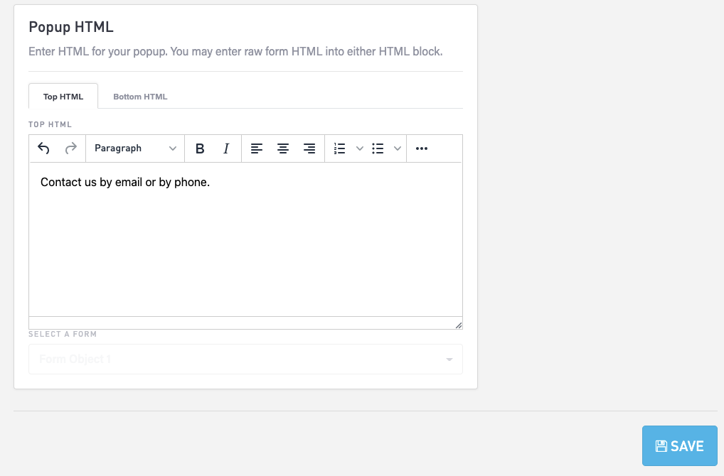 In the Popup HTML section, enter the test Popup Title, Headline Text, and Subheader Text that you want to appear at the top of the popup.