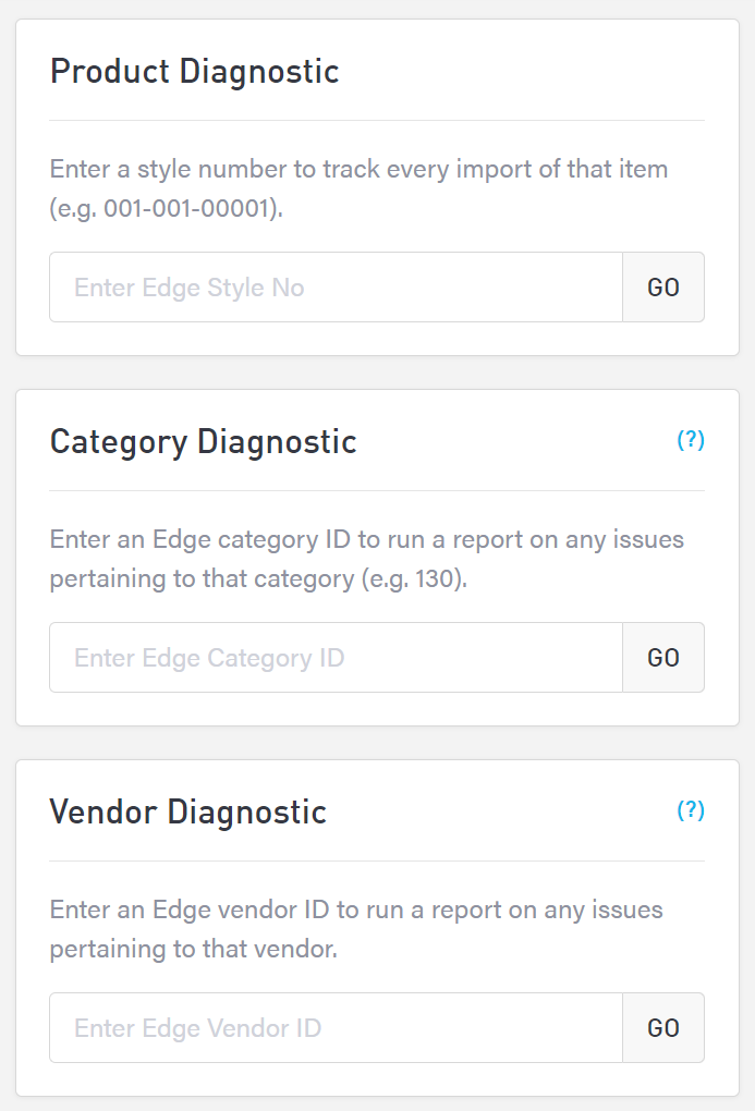 Enter an Edge vendor ID to find any issues pertaining to that vendor. This may help you troubleshoot why some items aren’t appearing for specific vendors on your website.