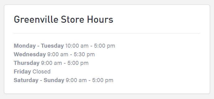 Dynamically set your store hours to appear in the footer of your website across all pages.