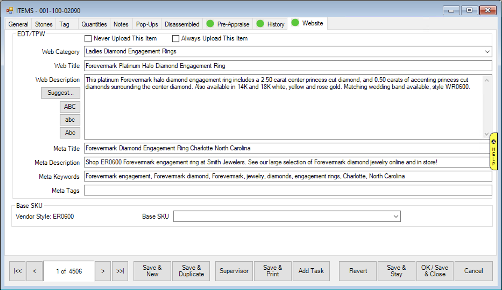 The Website tab of The Edge contains data fields for each product that will be used on your website. Below are explanations of what each field is used for, as well as some examples.